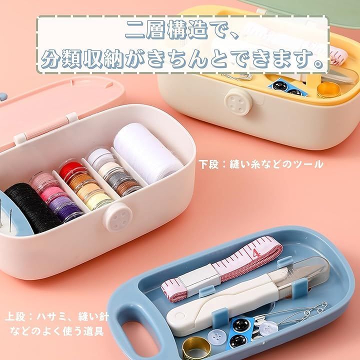 家庭用はもちろん、外出先や旅行用の簡易裁縫セット収納にも便利です。
