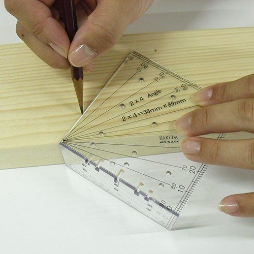清水製作所 ラクダ RAKUDA ツーバイフォー角度定規 2X4ヨウ カクドキリ のこぎり切断前の0~90度の線引き 線引きやビス止め位置 印付
