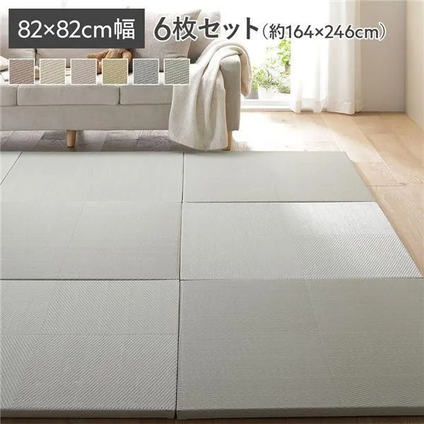 〔6枚セット〕 い草風 置き畳 約幅82×奥行82×高さ2.5cm ライトグリーン 市松模様 軽量 滑り止めシート付 傷防止 水拭きできる