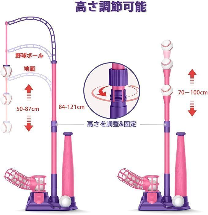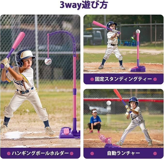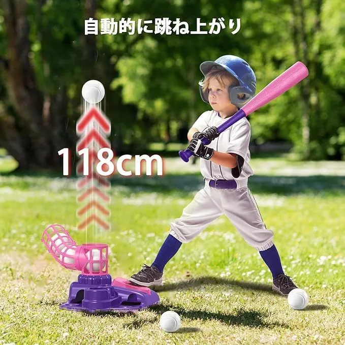 ■こちらの商品は沖縄・離島は配送料が異なります。 ご購入前にお知らせください。 お住まいの地域に合わせた専用ページを作成いたします。 商品特徴 3つの遊び方 * ハンギングティー:自己粘着カバー付きの野球ボールで、地面から50cmから87cmまでどこにでも吊るすことができます。画期的なハンギングティーで、より多くの楽しみを。 * 自動ランチャー:ペダルを踏むだけでボールが自動的に発射。タイムラグがあるので、お子様一人でも打ちやすく、親の手助けが不要です。 * 固定バッティングティー:伝統的な固定スタンドで、ヒット率アップ。腕や手首の力を鍛えながら、野球の楽しさを実感できます。 高さ調節可能 * ハンギングティー:約84cm〜121cm * 固定バッティングティー:約70cm〜100cm * お子様の成長や練習内容に合わせて簡単に調整可能です。 組み立て簡単・収納便利 * 主要部品は組み立て式で、説明書に沿えば約5分でセット完了。 * ハンギングティーと固定ティーの切り替えも簡単。 * 付属の収納バッグにコンパクトに収納できるので、お片付けも楽々。屋内・屋外を問わず楽しめます。 安全設計・耐久性 * 高品質で耐久性のある素材を使用。 * 軽量かつ持ちやすい格納式バットで、安全に楽しく練習できます。 お子様に最適 * 野球への興味を引き出し、手と目の協調性を向上させます。 * 一人遊びはもちろん、ご家族やお友達との遊びを通じて、絆を深めるきっかけにも。 * 楽しく体を動かしながら、ストレス解消や運動不足の解消にもお役立ちです。 プラス配送料の目安 沖縄・離島 +2,000円