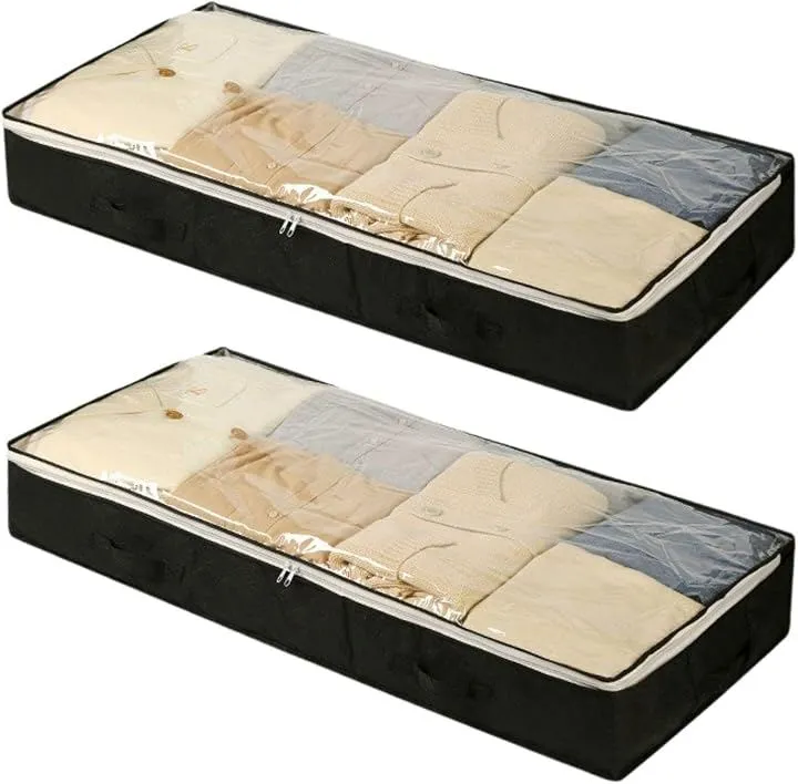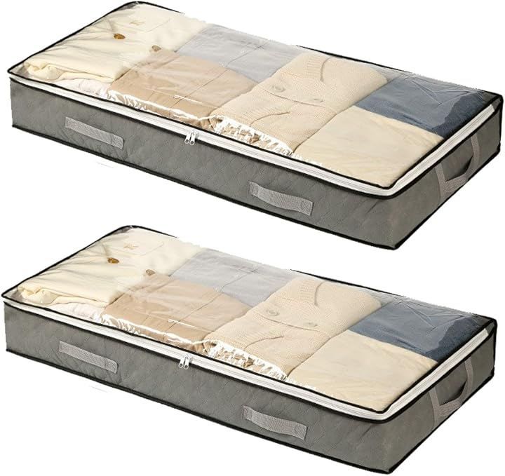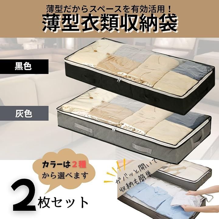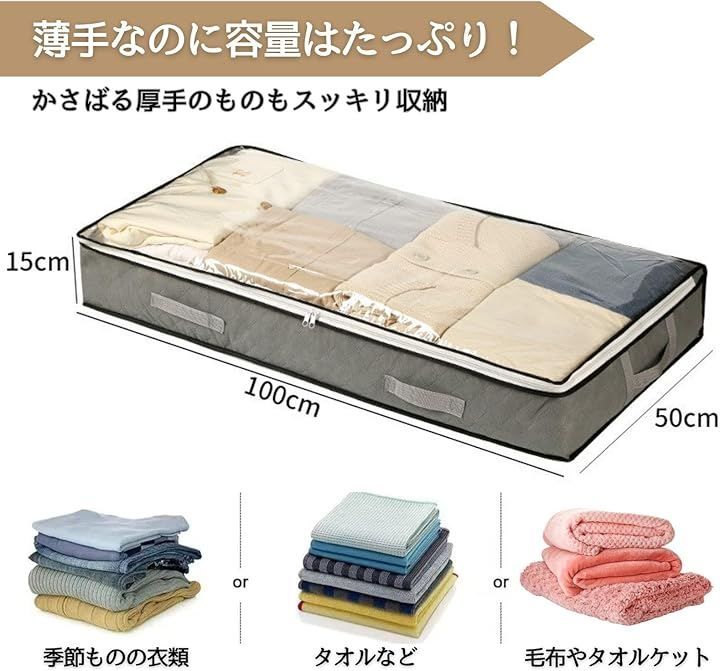Active Island 衣類収納 袋 薄型 2枚セット 隙間 ベッド下収納 75L a171 (グレー, 100x50x15cm)
