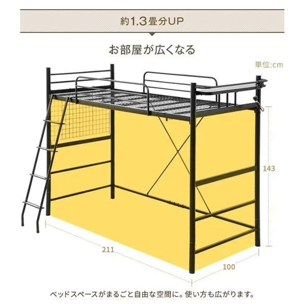 ■ポイント1 約1.3畳分お部屋が広くなる ロフトベッドなら、お部屋で足りないスペースの問題をすべて解決! ベッド下の空間を活用することで、ベッドスペースが丸々自由に。 場所がなくてあきらめていたソファを置いたり、書斎を作ることもできます。