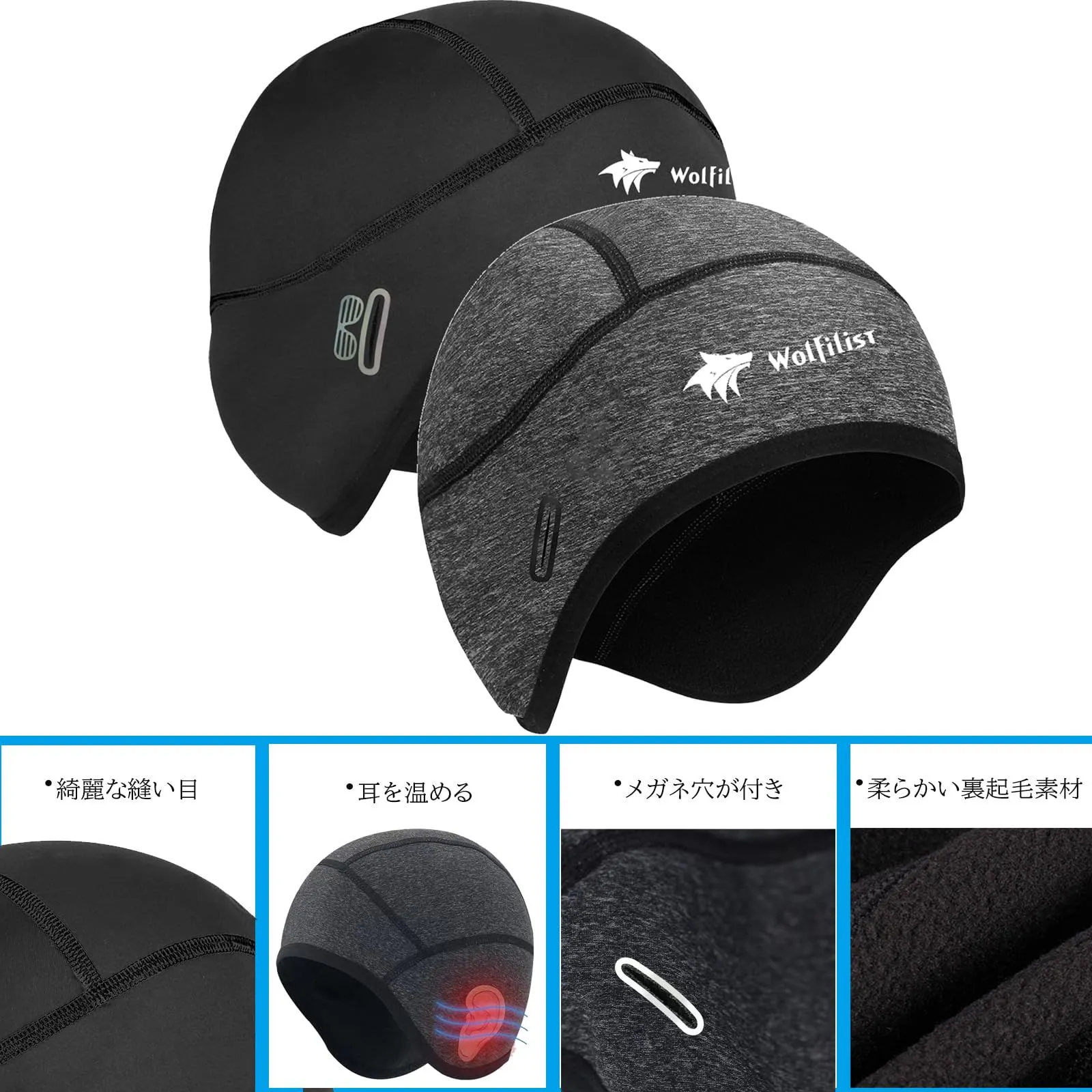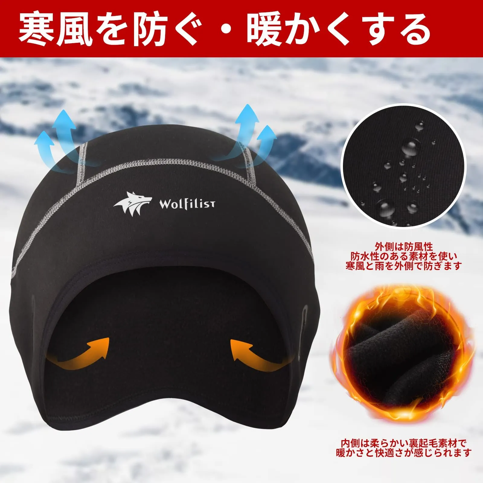 [WOLFILIST] インナーキャップ サイクルキャップ 秋冬用 ヘルメット インナー 帽子 防寒 防風 スカルキャップ ビーニー 裏起毛 保温 耳あて 男女兼用 自転車・スキー・ 登山 ・ランニング 帽子