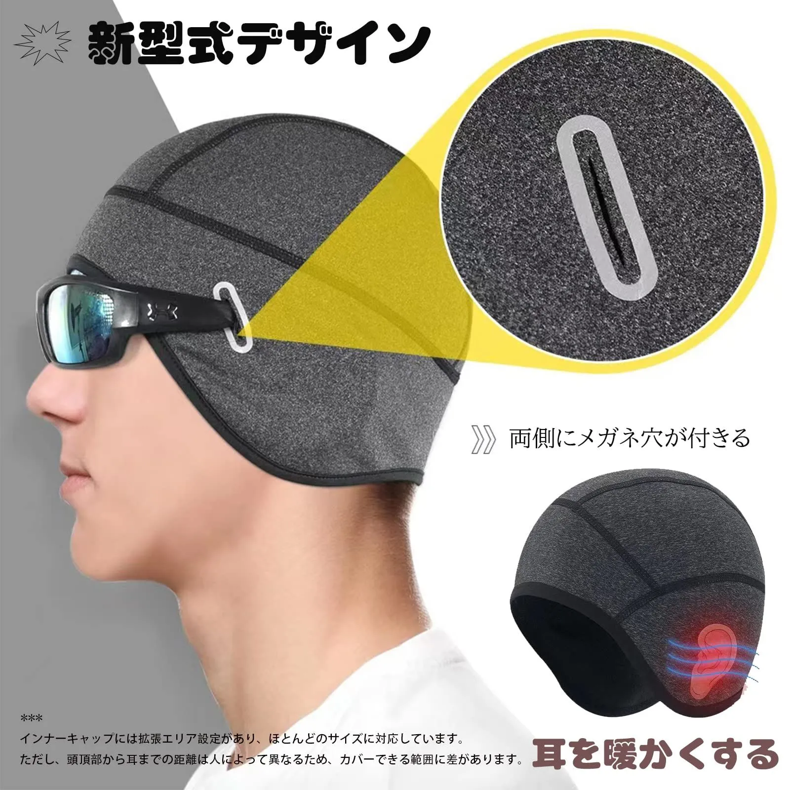 【保温・防風 サイクルキャップ】サイクルインナーキャップの外側は優れた防風性・防水性素材を使って、寒風と雨を外側で防ぎます。サイクリングキャップの内側は柔らかい裏起毛素材を使って、暖かさと快適さが感じられます。また、サイクル 帽子の両側が長くなって、耳も中に入れることができです。厳寒時のサイクルにも最適です!