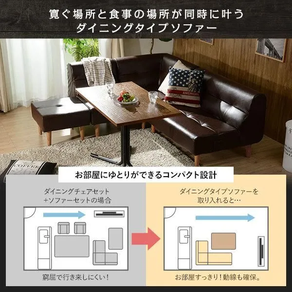 【寛ぐ場所と食事の場所が同時に叶うダイニングタイプソファ】 お部屋にゆとりができるコンパクト設計。 ダイニングセット+リビングソファの両方はお部屋に置けない・・置けても圧迫感があるという方におすすめ。 ダイニングタイプのソファにすれば、お部屋がすっきり!導線も確保できる。
