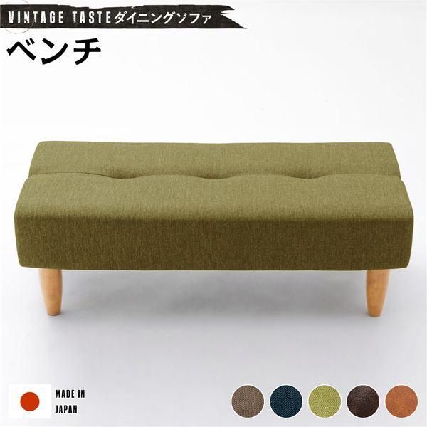 ダイニングソファー/ローソファー 〔ベンチ グリーン・ナチュラル脚〕 ファブリック生地 日本製