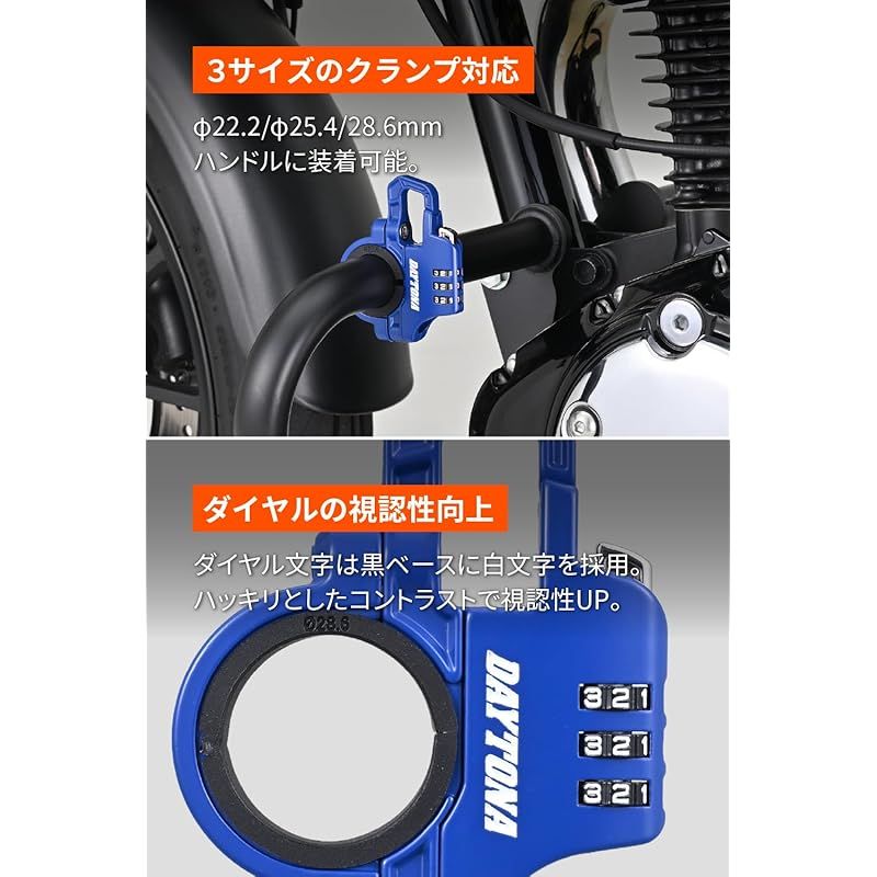 デイトナ(Daytona) ヘルメットロック バイク 取付幅13mm スレンダーヘルメットロック ダイヤルタイプ ケーブル付き ブルー 1