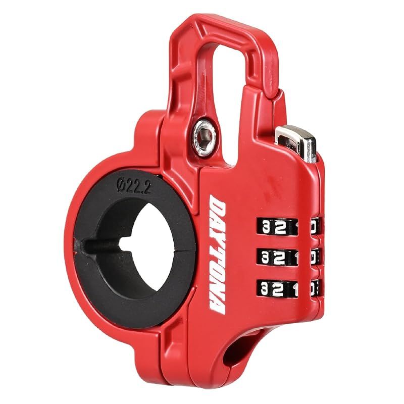 デイトナ(Daytona) ヘルメットロック バイク 取付幅13mm スレンダーヘルメットロック ダイヤルタイプ レッド 1