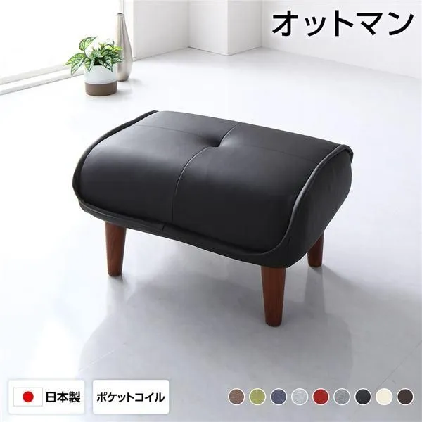 日本製 オットマン/スツール 〔PVC生地 ブラック〕 脚部:ブラウン 約幅59cm ゆったりサイズ シンプル 脚部取り付け 合成皮革 合皮