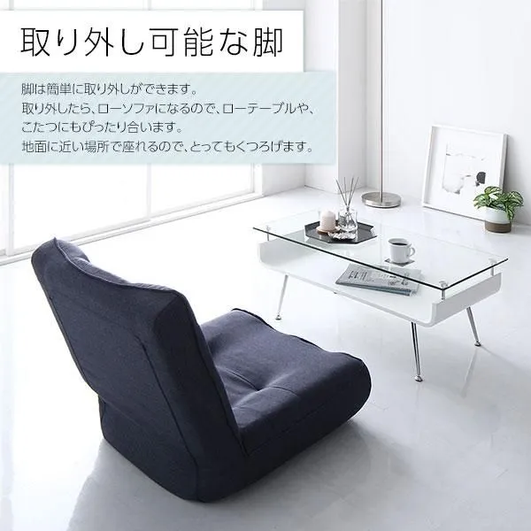 ■取り外し可能な脚 脚は簡単に取り外しができます。 取り外したら、ローソファになるので、ローテーブルや、こたつにもぴったり合います。地面に近い場所で座れるので、とってもくつろげます。
