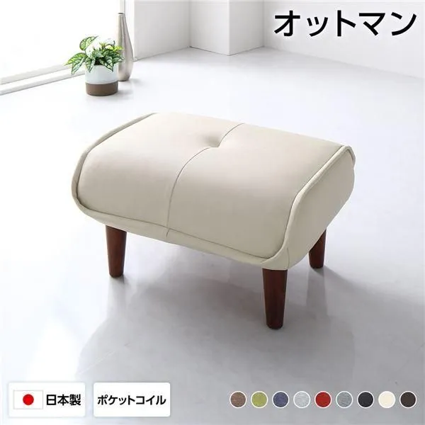 商品名:日本製 オットマン/スツール 〔PVC生地 アイボリー〕 脚部:ブラウン 約幅59cm ゆったりサイズ シンプル 脚部取り付け 合成皮革 合皮