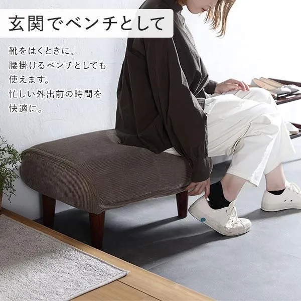 商品名:日本製 オットマン/スツール 〔コーデュロイ生地 モスグリーン〕 脚部:ブラウン 約幅59cm ゆったりサイズ シンプル 脚部取り付け