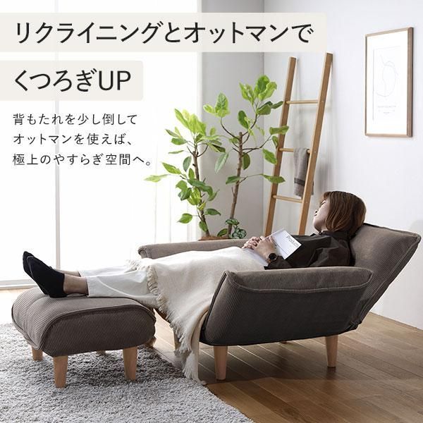 ■リクライニングとオットマンでくつろぎUP 背もたれを少し倒してオットマンを使えば、極上のやすらぎ空間へ。