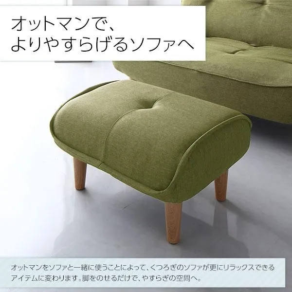 ■オットマンで、よりやすらげるソファへ オットマンをソファと一緒に使うことによって、 くつろぎのソファが更にリラックスできるアイテムに変わります。 脚をのせるだけで、やすらぎの空間へ。