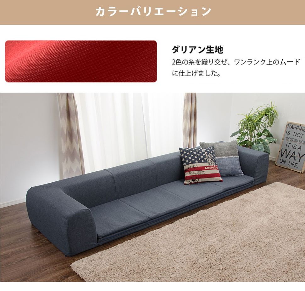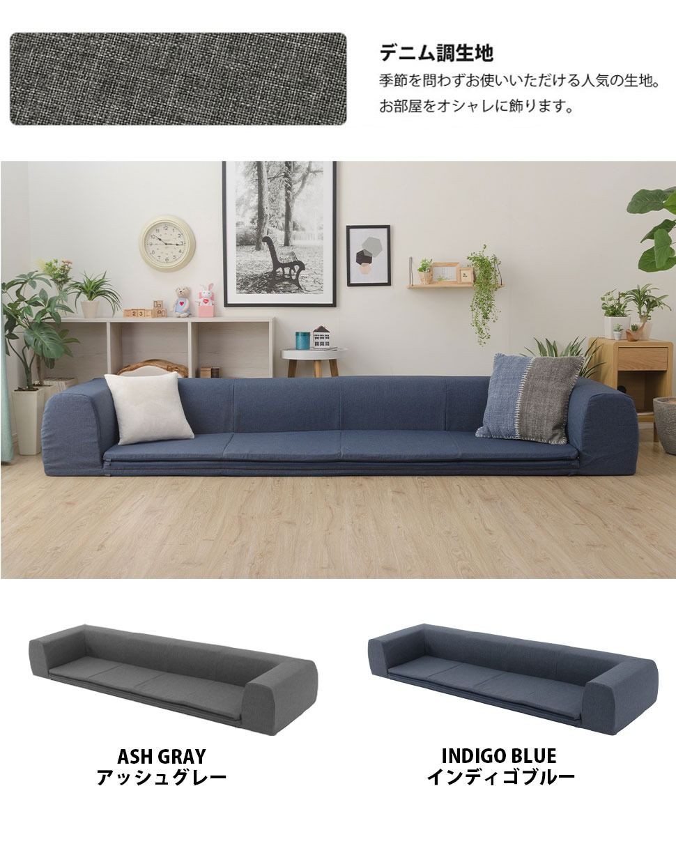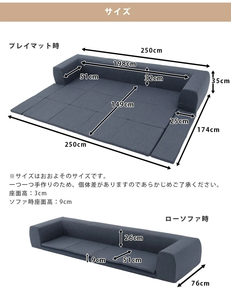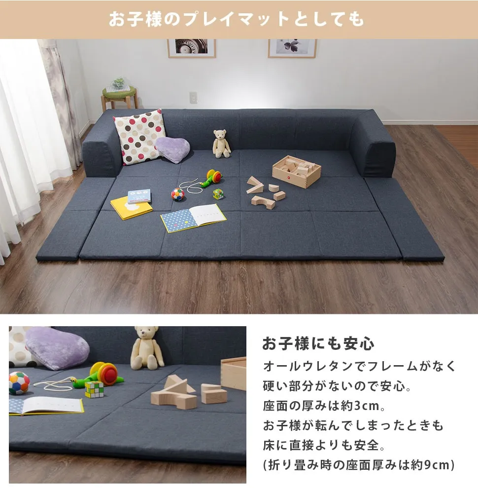 【サイズ】: ソファ時:W2500mm×D760mm×H345mm マット時:W2500mm×D1740mm×H345mm 座面厚さ:約30mm