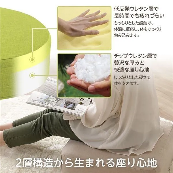 ■ポイント1 疲れない贅沢な厚み ・たっぷり16cm(ラウンドタイプ)、17cm(スクエアタイプ)の厚みは 床の固さとは無縁です。 ・2層構造の適度な固さが耐圧を分散させ、沈み込みすぎず、腰と背中への負担も軽減します。