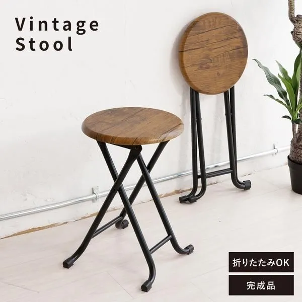 ヴィンテージスツール(ブラウン/茶) 折りたたみ椅子 カウンターチェア スチール イス スツール コンパクト スリム キッチン パイプイス モダン レトロ カフェ...