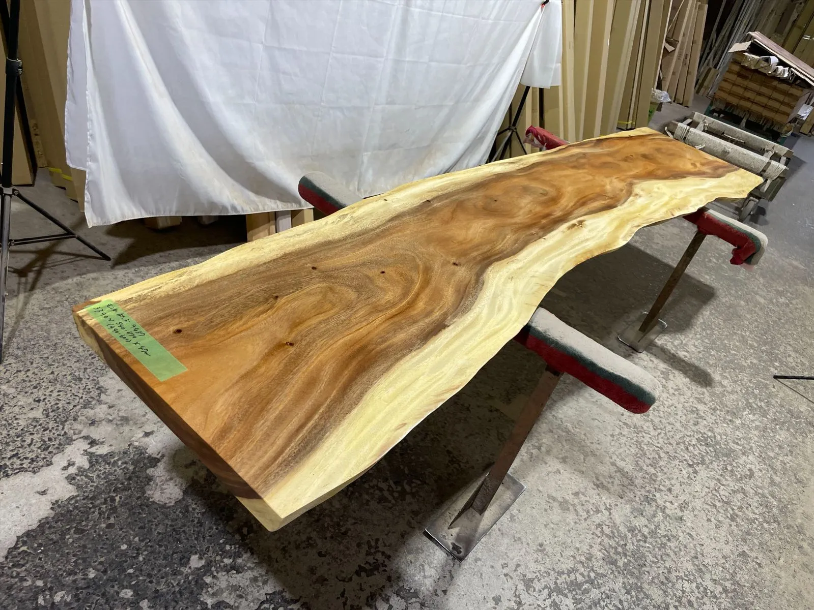 モンキーポッド9437 一枚板無垢 乾燥材 3390x540-670x47mm カウンター センターテーブル ダイニングテーブル