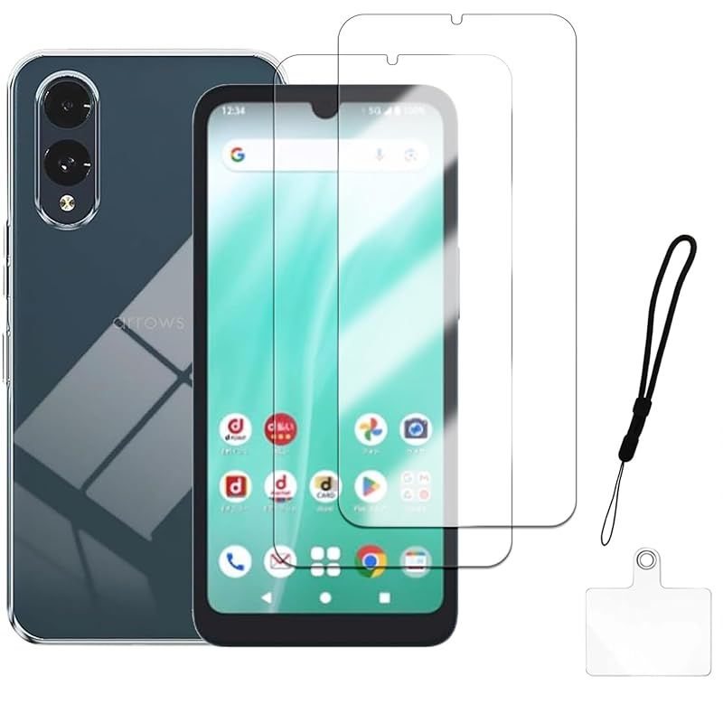 【新品】 kawaylJP For Arrows We2 F-52E 用の ガラスフィルム【2枚 保護フィルム+1個 TPU ケース】We2 F-52E 用の フィルム 硬度9H We2 F-52E用の 強化ガラス ケース カバー+ショート ストラップ 携 1