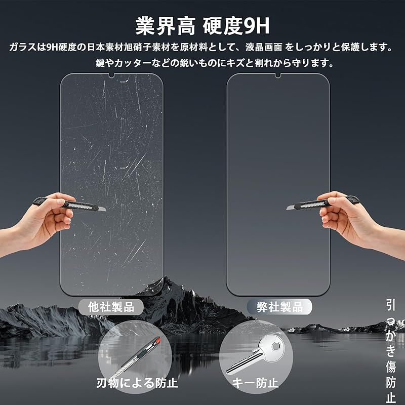 【硬度9h、高透過率】保護フィルムの表面硬度は業界最高の9hで、裁断機など鋭いものが当たってもダメージなく使用できます。スクリーンを損傷から守ります。ポケットに入れても傷がつく心配はありません。フィルムを貼ったことを忘れてしまうほど、鮮やかな色をディスプレイに再現できます。