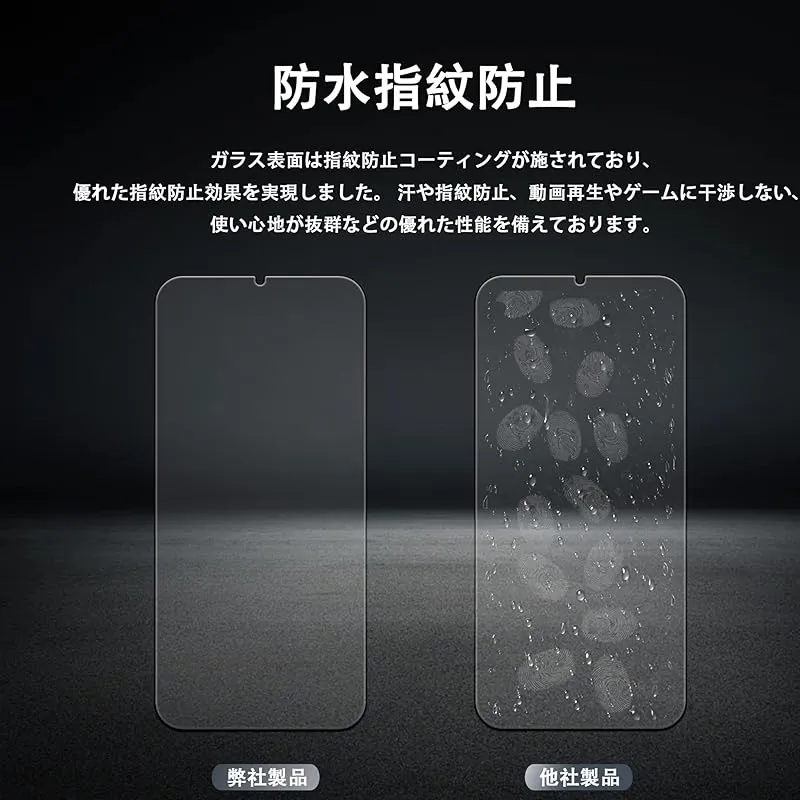 【飛散防止防指紋防油】表面強度9H、ガラス飛散防止の特殊加工、耐油性と撥水性に加え、指紋耐性が強い。強化ガラスフィルムは飛散防止加工を行っておりますので、万が一ガラスが割れても怪我を与えません