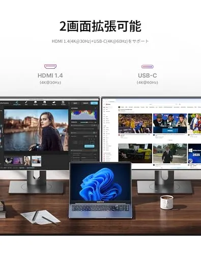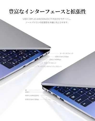 内蔵ウェブカメラ、WiFi 5、Bluetooth 5.0、HDMI、USB 3.2(5Gdps)、Type-C、TFカードリーダー、マイク/ヘッドホン出力端子