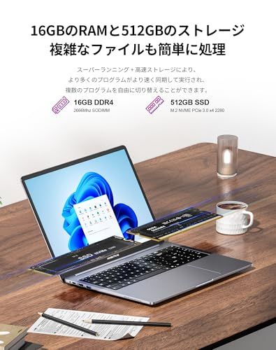 ノートパソコン 16GBメモリ+512GB SSD 【AMD Ryzen 5 3550H 最大3.7GHz N150より速い】ノートパソコン 16インチ 1920×1200 IPS液晶 Windows 11 Pro、ノートPC USB3.0+Type-C+高速