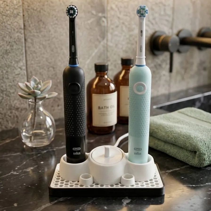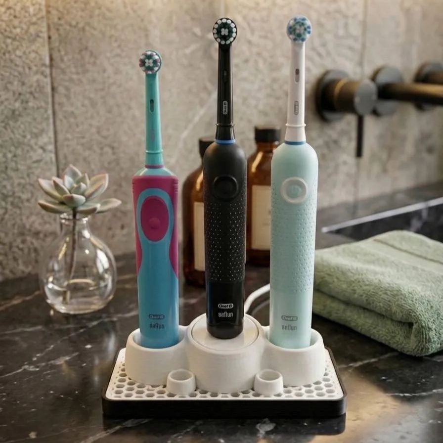 3Dプリンターで製作した、オリジナルデザインの電動歯ブラシスタンドを
