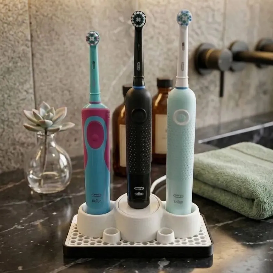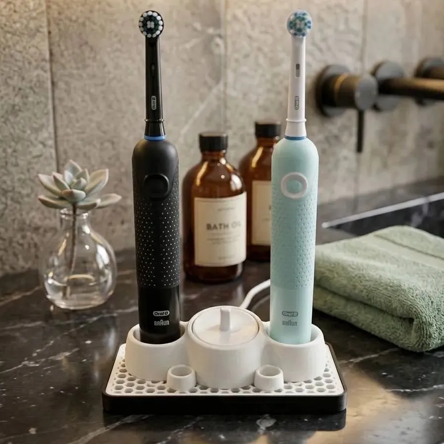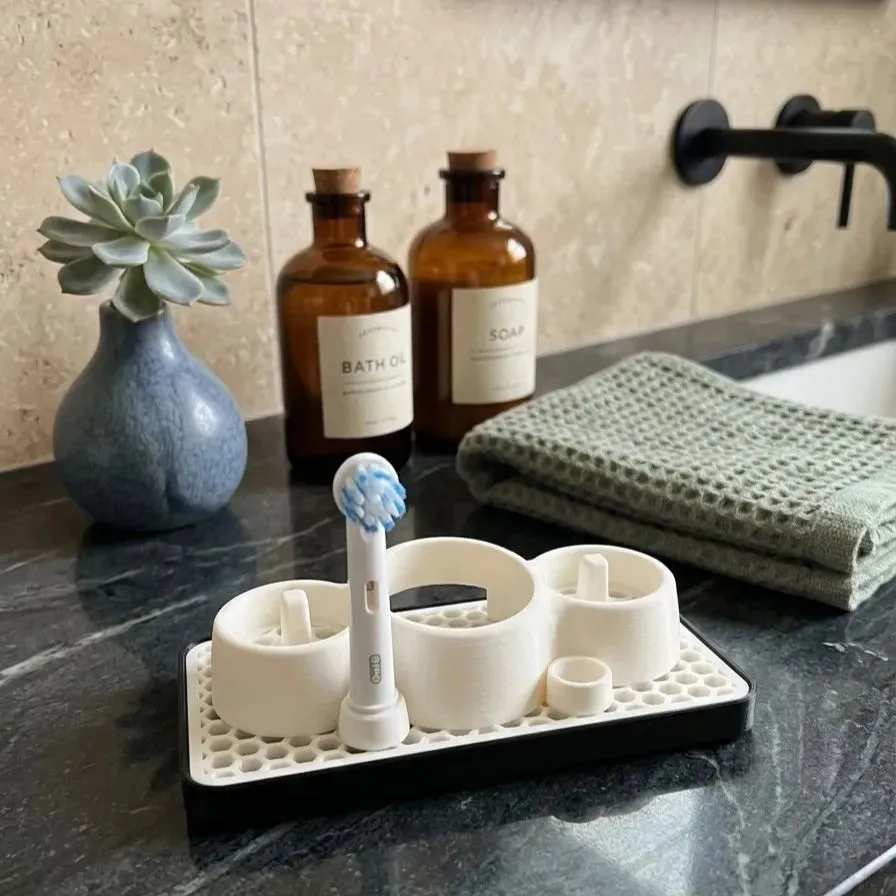 ブラウン オーラルB等対応 電動歯ブラシ&替えブラシ収納スタンド 洗面所をホテルライクに。分解して洗える!3Dプリント製