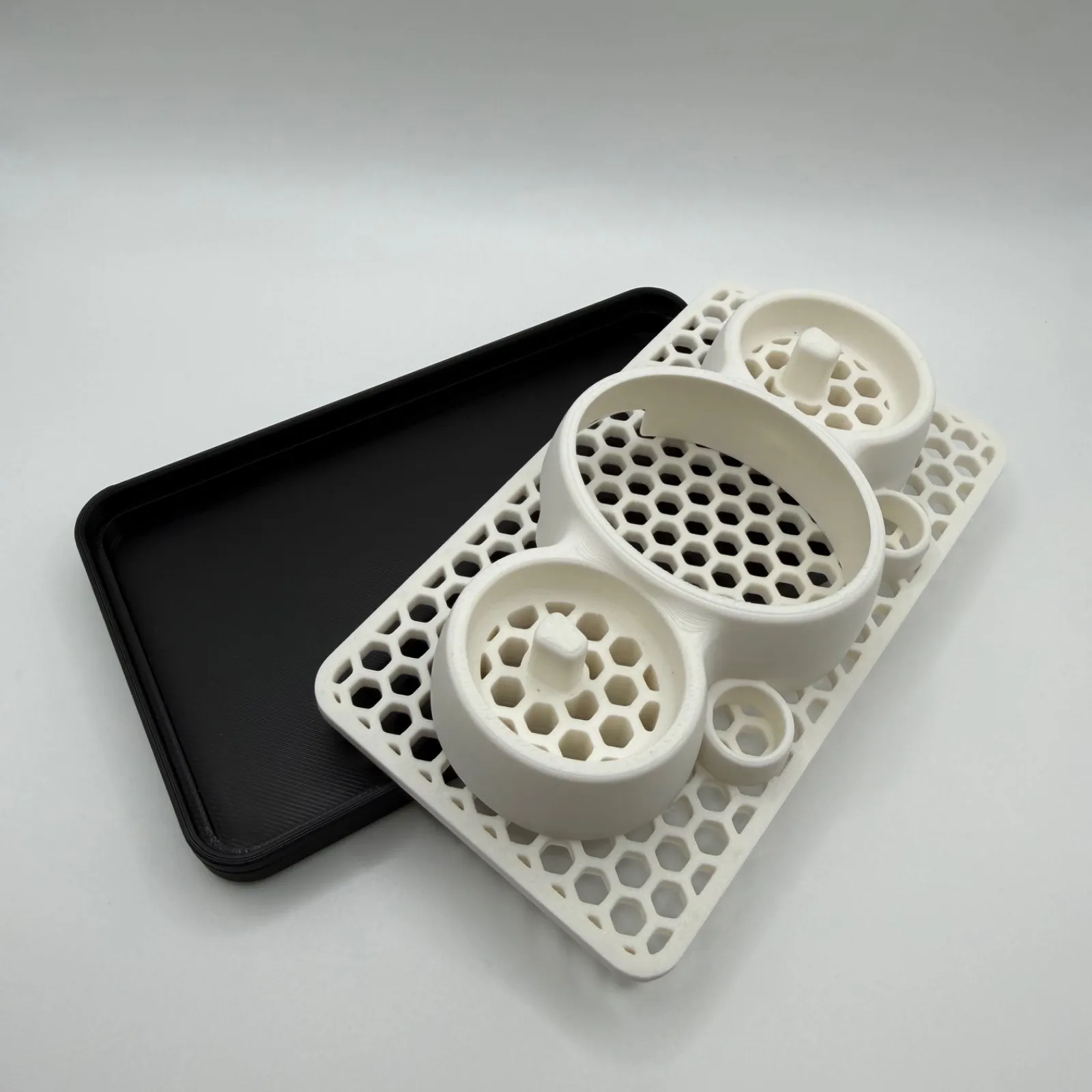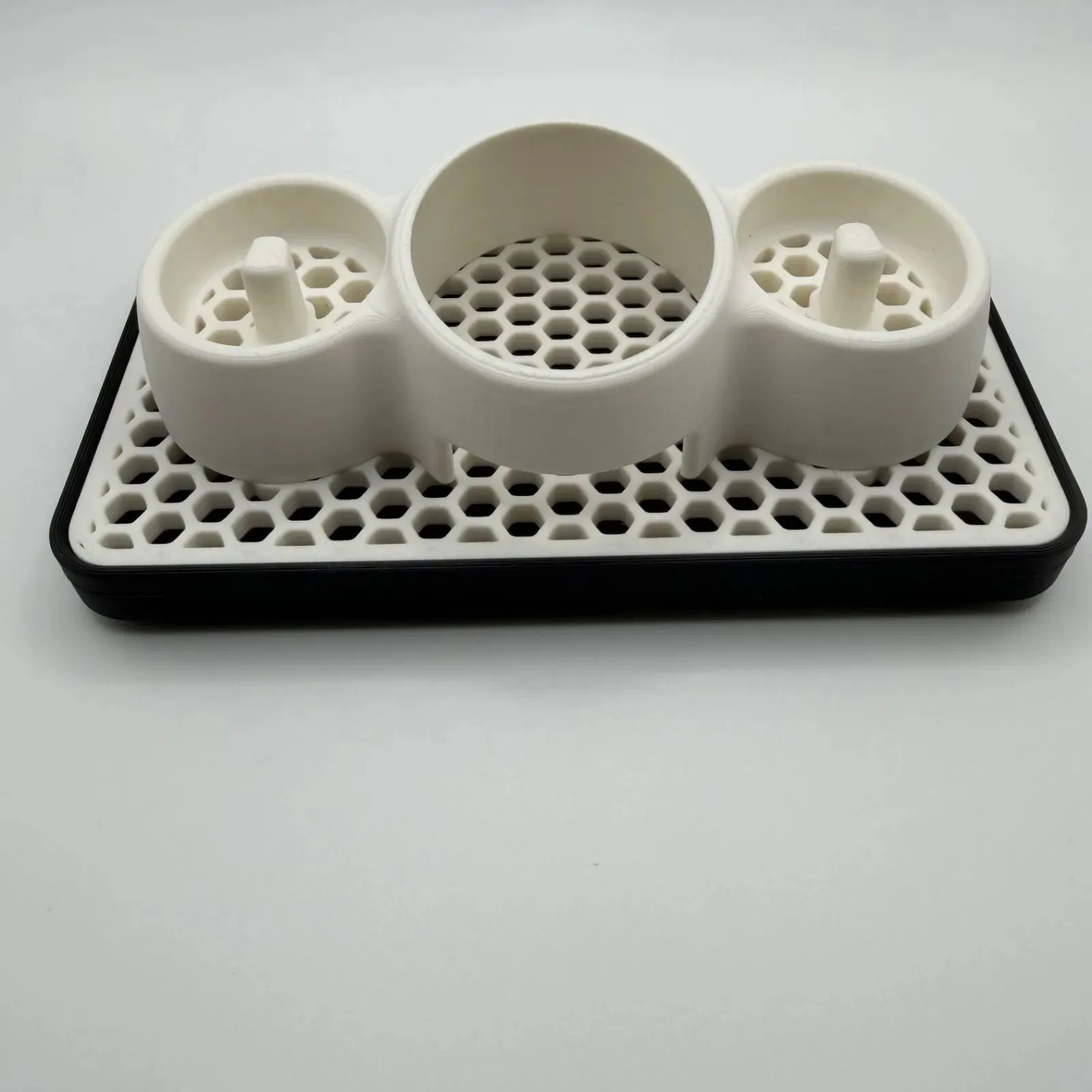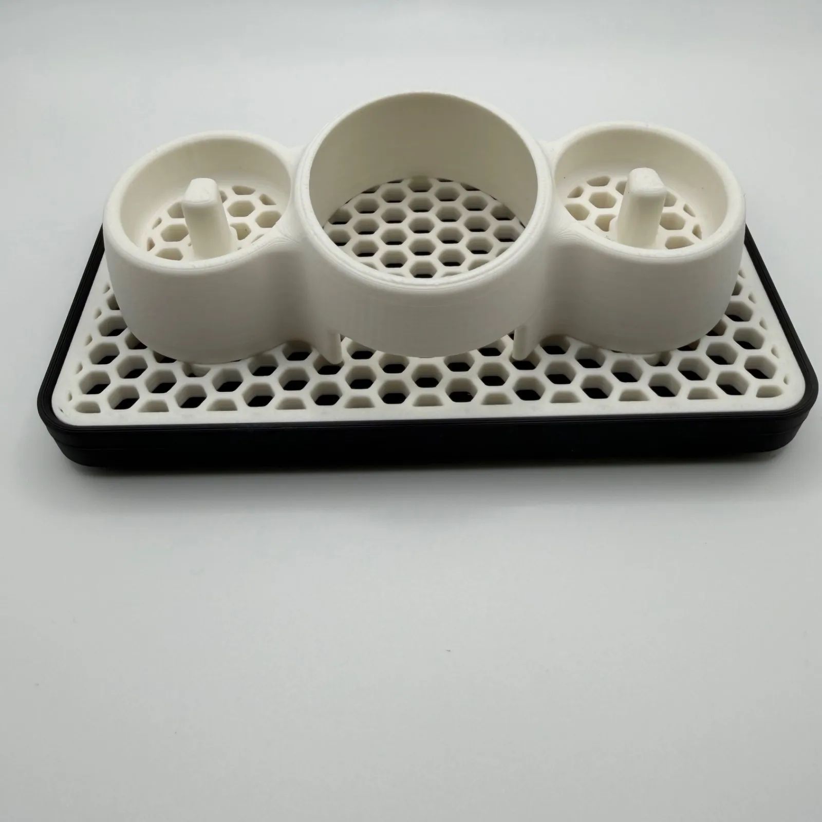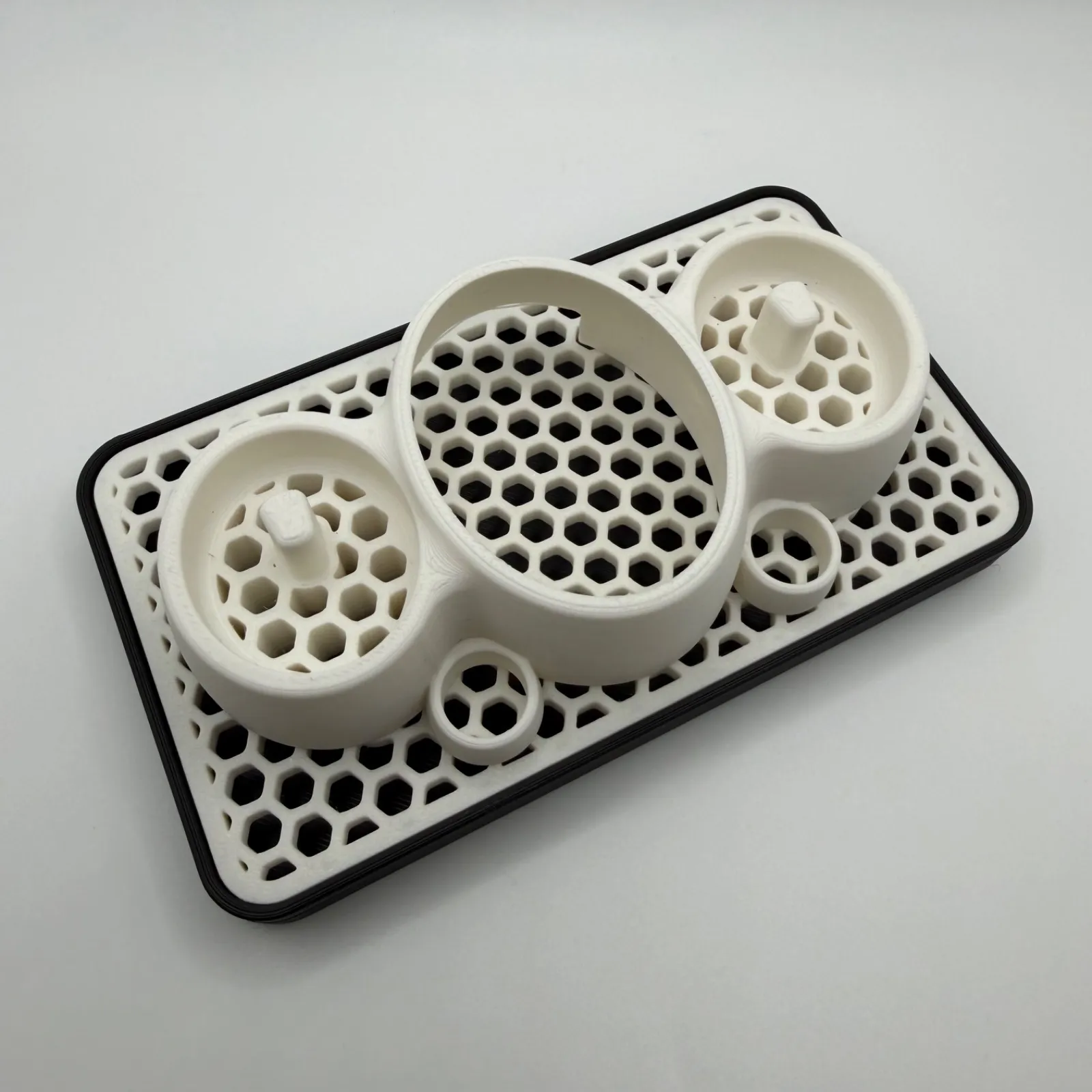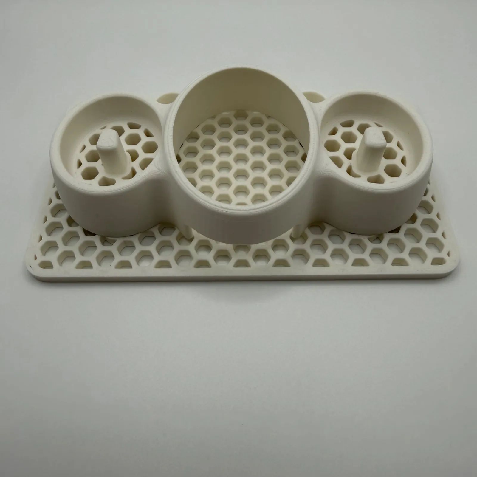上部パーツは通気性と排水性に優れたハニカム(蜂の巣)模様のデザイン。濡れた歯ブラシを置いても水が溜まらず、すぐに乾きます。
