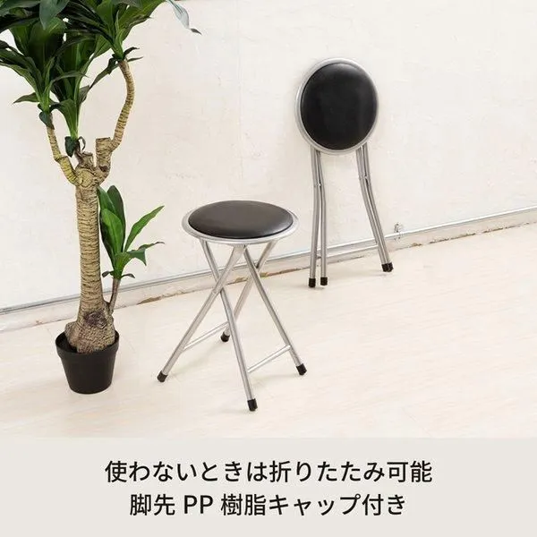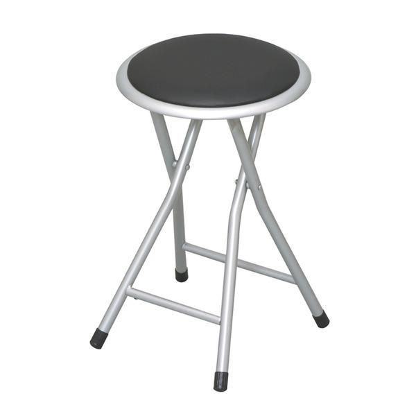 ホームスツール(折りたたみ丸椅子) ブラック(黒) 高さ45cm 合成皮革/スチール/パイプイス//折り畳み/コンパクト/スリム/軽量/完成品/NK-002