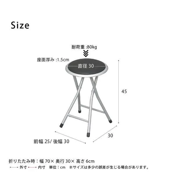【商品サイズ(約)】 幅300×奥行300×高さ450mm 座面サイズ(約):直径300×厚み15mm 折り畳み時厚み60mm