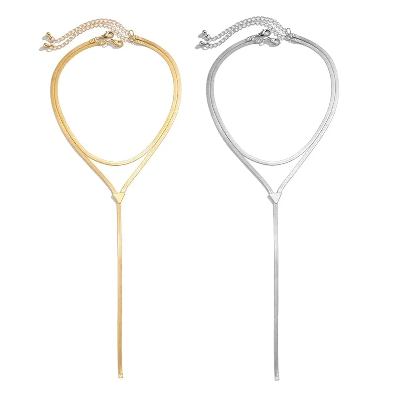 【スネークY字蛇骨ネックレス】女性のY字型のヘビ型のゴールドレイヤードネックレス、ファッションなボヘミアンスタイルのロマンチックなスタックチョーカー、ヘビの骨型のチェーンデザイン、ツイスト型のネックレス。 非常にレトロでエレガントで、美への独自の追求を強調します。