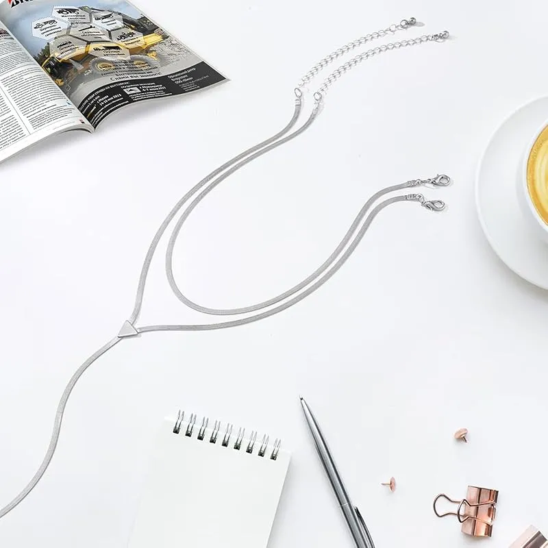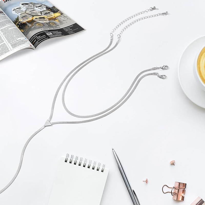 【商品詳細】カラー:シルバー // 素材:銅 // 仕様:ショートチェーン長さ + 延長チェーン 30cm + ロング着用チェーン長さ 7cm + 延長チェーン 35cm + 7cm 吊り下げチェーン長さ 14cm // 重量 (kg): 0.009。<パッケージ> 収納ポーチを提供いたします、プレゼントとしてもいいです。