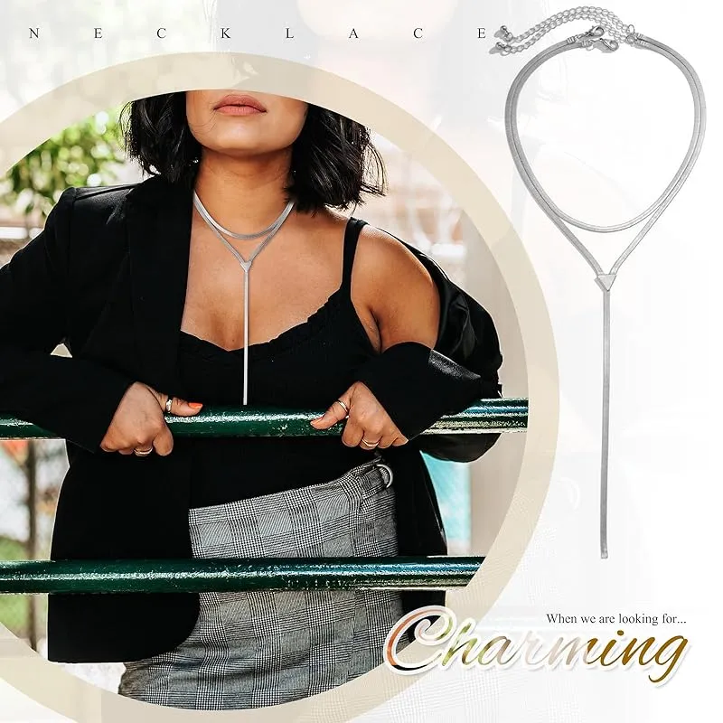 【新品】 [Flongo] ロングネックレス レディース 二重層 蛇 チェーン: Y字 V系 ネックレス ボヘミア チョーカー-銅製 高級 欧米風 人間 首輪 地雷 アンティーク アクセサリー ハロウィン クリスマス プレゼント シルバー 0