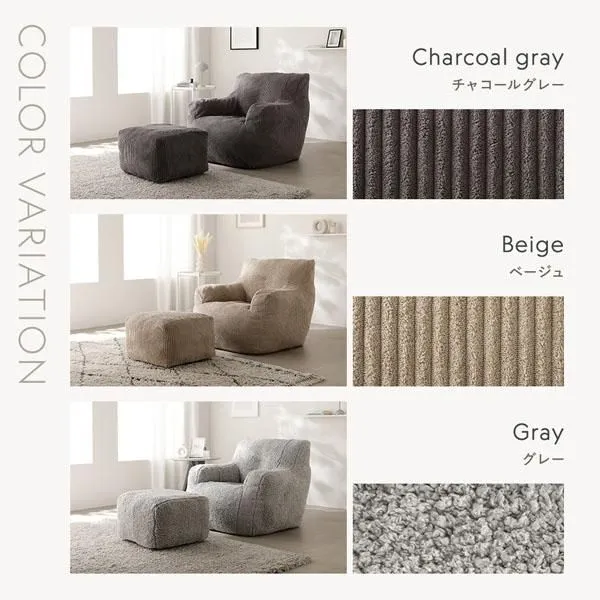 ■デザインをひきたてる2種類の素材 ・コーデュロイ生地 なめらかで見た目にぬくもり感のある生地。 ベーシックなカラーリングで色々なインテリアにマッチ。 カラー展開:チャコールグレー/ベージュ ・もこもこファー生地 もこもこ感が気持ちのいいファー。 ふわふわした肌触りです。 明るめのグレーカラーが見た目に軽やかさもプラスします。 ※ほこりが付きやすいため、粘着クリーナー(使い切りタイプ)が付属します。 カラー展開:グレー