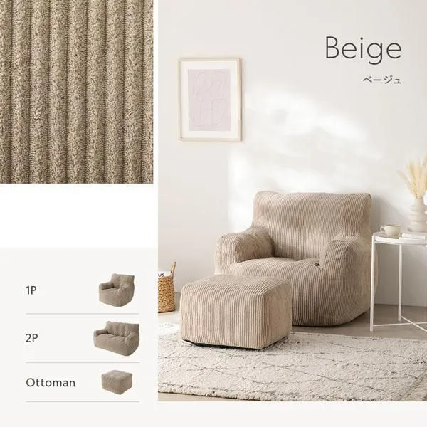 商品名:圧縮ウレタン クッションソファ オットマン 専用カバー 単品 コーデュロイ ベージュ 洗える カバーリング スツール