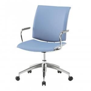 【新品・5営業日で発送】藤沢工業(TOKIO) ミーティングチェア FMP-5AL-S ライトブルー(レザー) (2244845)