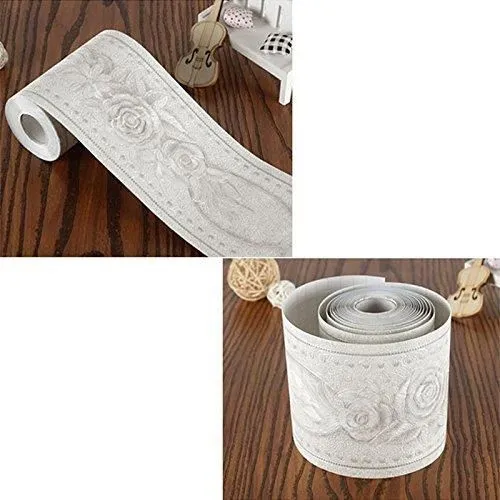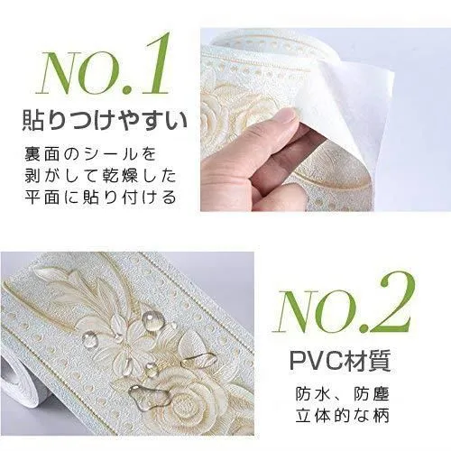 ホワイト バラ Umora トリムボーダー 壁紙シール 防水壁紙 ウォールステッカー 3D (ホワイト バラ)