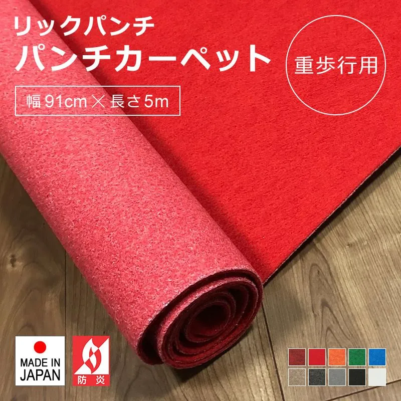 ★送料無料(一部除く)★新品★ パンチカーペット 廊下 ロールカーペット 幅91cm 長さ5m 廊下用マット ロング 防炎 厚み 赤 黒 白 レッドカーペット 日本製 階段 車 内装 施工 床材 廊下敷き 保護 傷防止 リックパンチ 【lic-pnc-001】