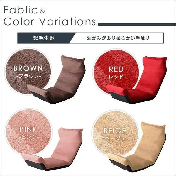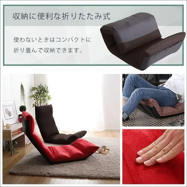 【商品特徴】 14段階のギアチェンジで絶妙な角度に調整ができるアップスタイル!しっかりと体を支え、疲れにくい形状になっています。コンパクトに折り畳むことができるので収納するのにも便利です。生地はふわふわの起毛タイプとサラッとした通気性のあるメッシュタイプからお選びいただけます。