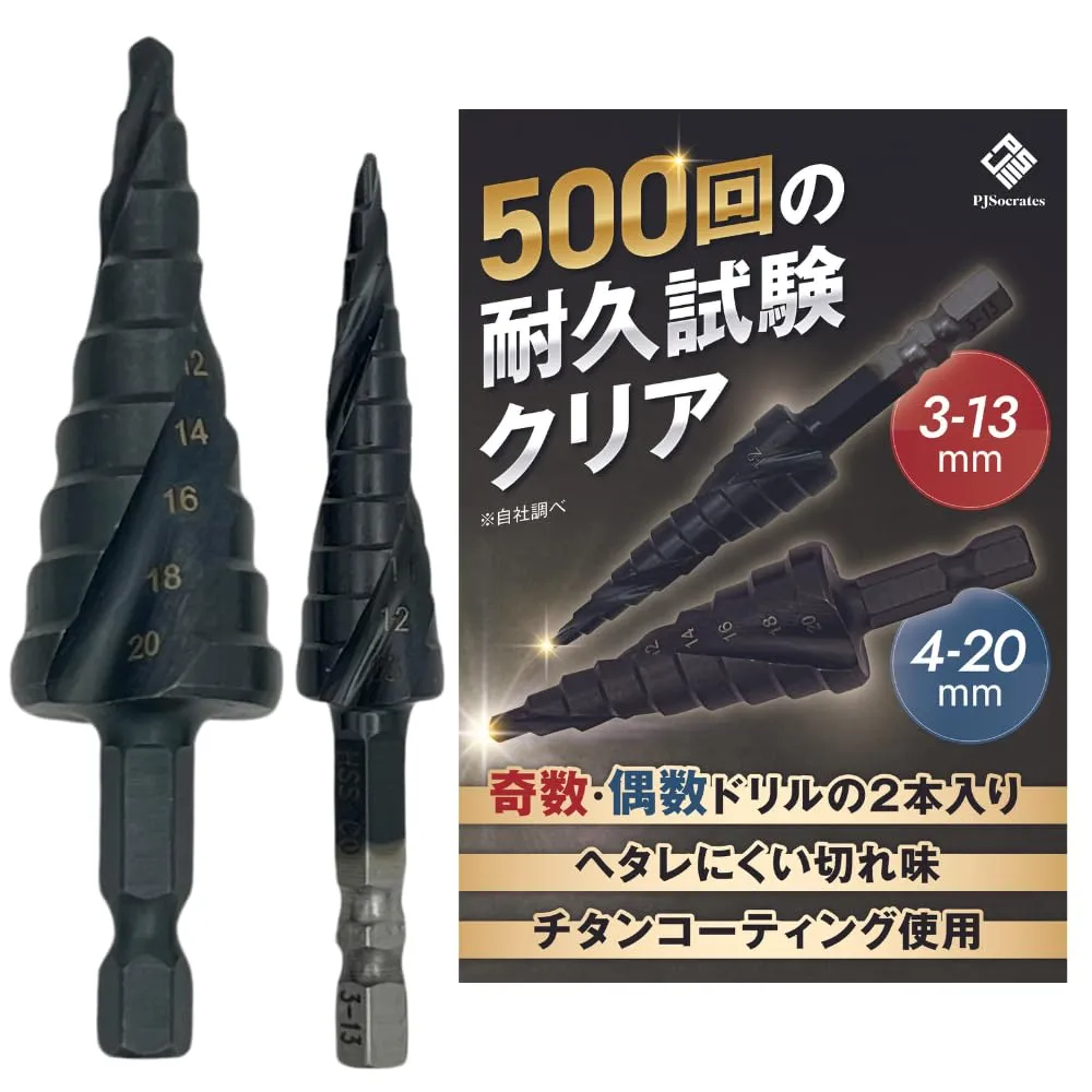 プロジェクトソクラテス ステップドリル 2本セット チタンコーティング ドリルビット 3-13mm 11段 + 4-20mm 9段