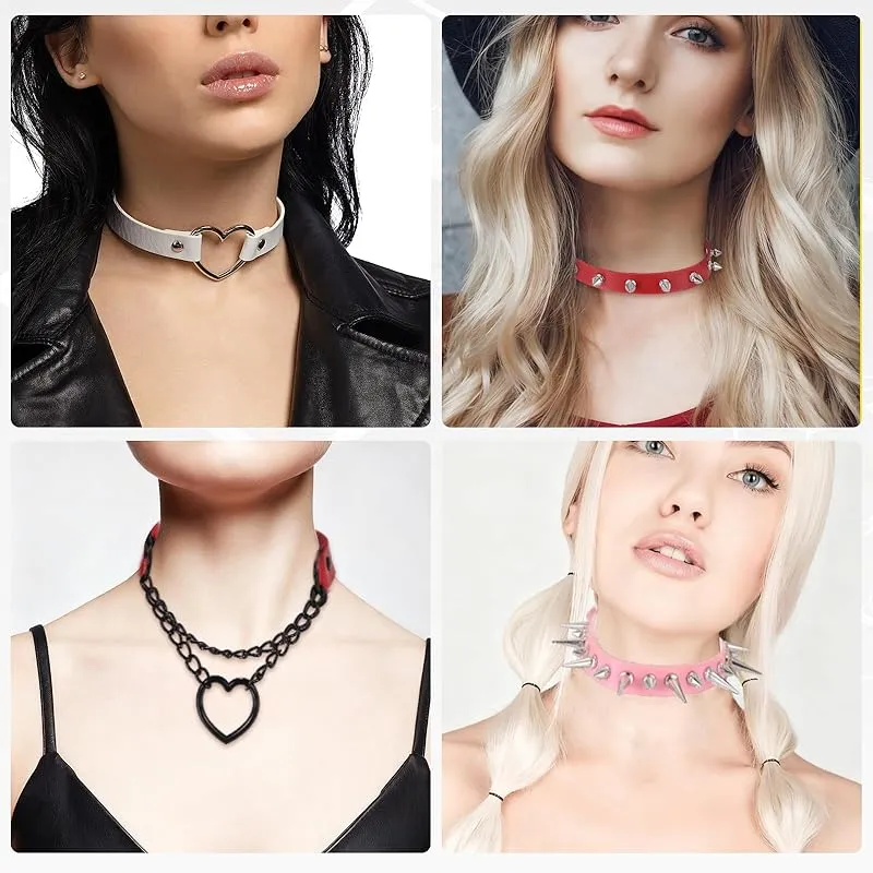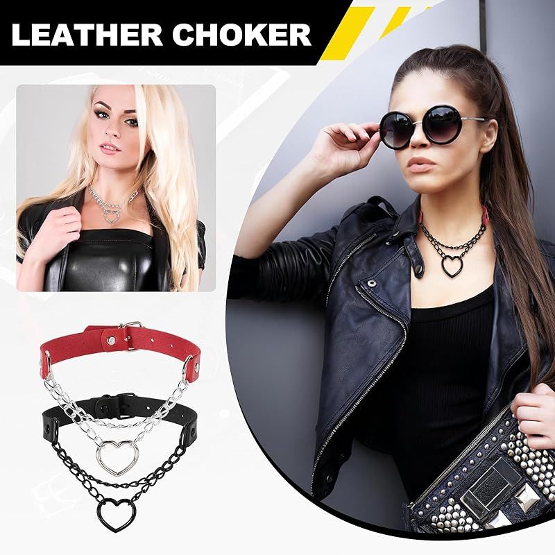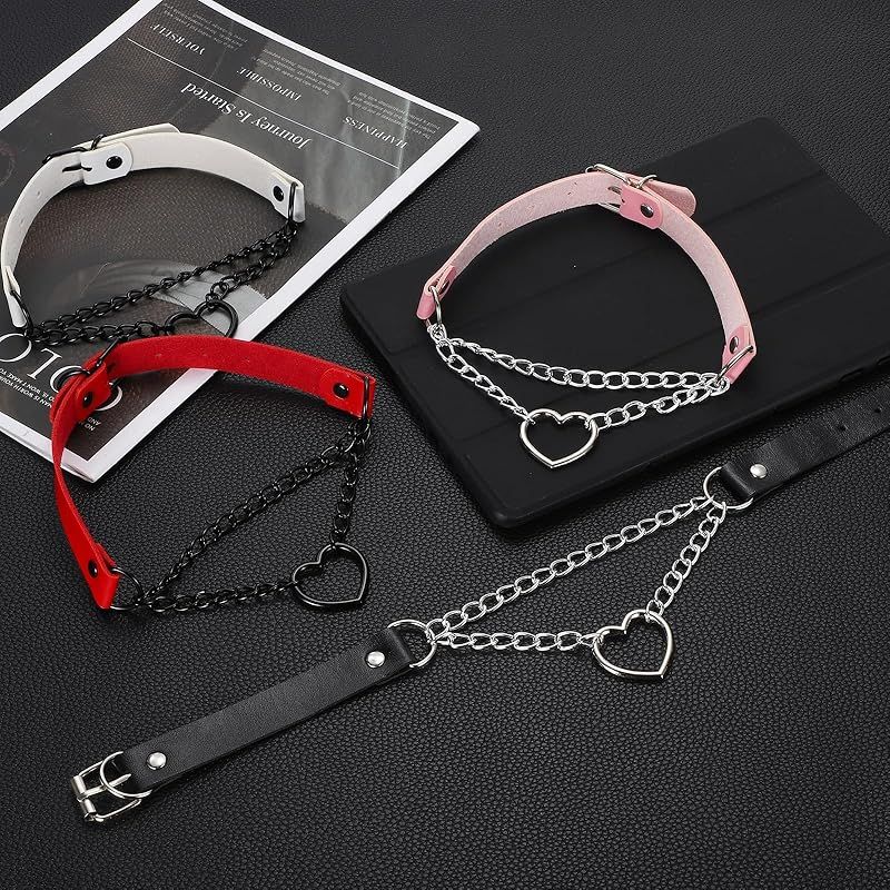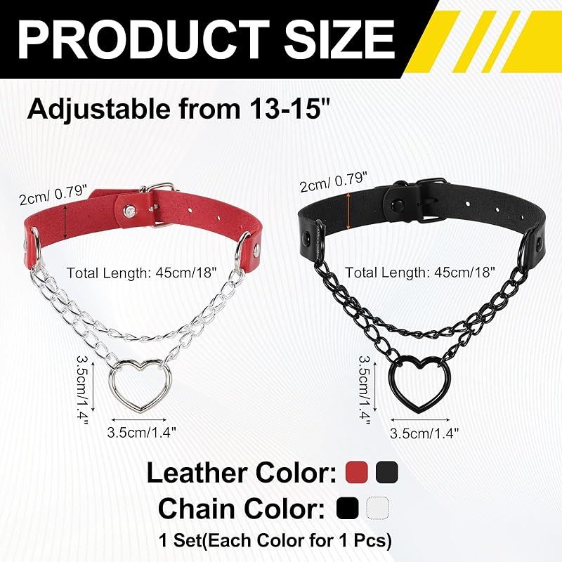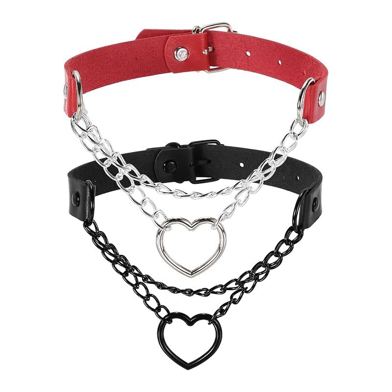【新品】 [uxcell] PUレザーチョーカー、ハート型チョーカーネックレス ゴシックパンクグランジエモネックレス ゴシック宝石アクセサリー 女性用調整可能PUカラー 黒、シルバーレッド、2個入り 0