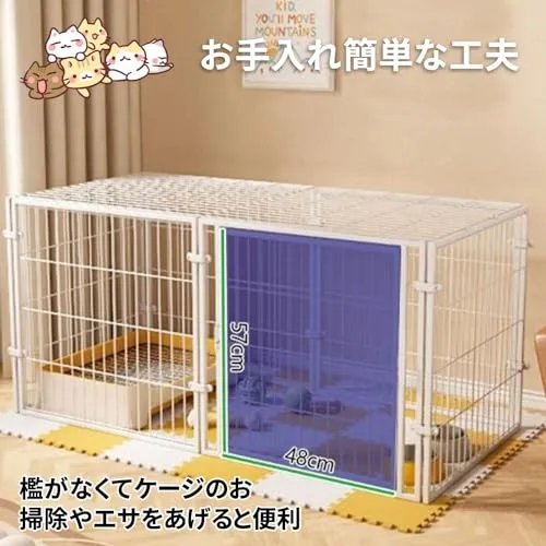 【脱走防止】ペットが開けることができない構造ロックストッパーだからドアにロックが掛かり安心です。また、エサやトイレの入れ替えなどもスムーズに行えます。インテリアにも馴染みやすい、落ち着いた風合い、室内飼いに最適です。外にでたがる猫や犬などを落ち着いた場合を作り、扉付き、締めば飛び出しを防止、飼い主さんも安心できます。