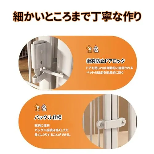 【多様な用途】ペットフェンスは、犬だけでなく、ウサギ、アヒル、モルモット、およびその他の動物を収容するのにも最適です。 さまざまなペットに使用できます。 ご注意:現在は仕様がアップグレードされており、実物はドアが2枚付いたタイプとなっております。