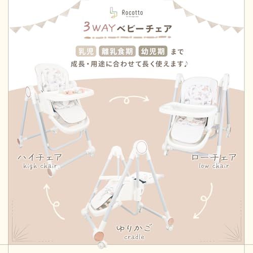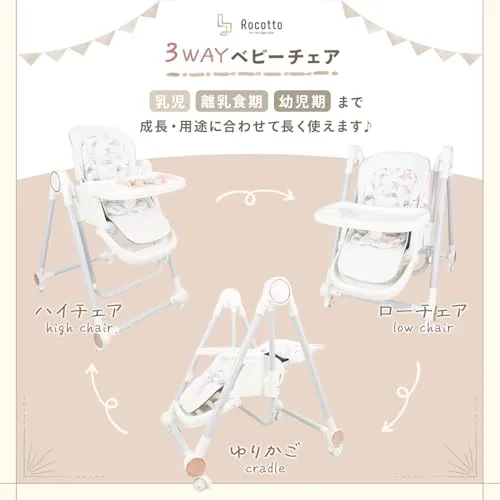 [Rocotto] 3Way ベビーチェア ゆりかご ハイチェア ローチェア 折りたたみ テーブル付き キャスター付き テーブルチェア 乳児 幼児 赤ちゃん リクライニング 8段階調整 日本語説明書付き (ブラウン)☆彡