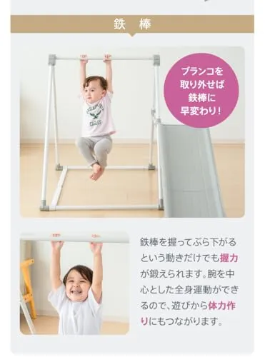 1台4役の室内遊具 リーズナブル&コンパクトに折りたたみ収納 室内遊具 子供 キッズ 室内ジャングルジム ロングすべり台 鉄棒 ブランコ プレミアムおりたたみキッズパークF Nebio(ネビオ)×野中製作所☆彡