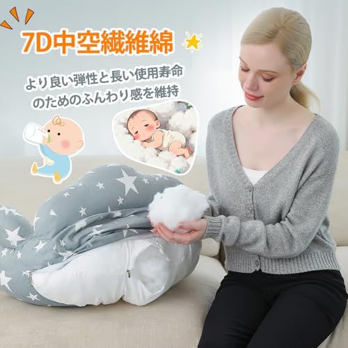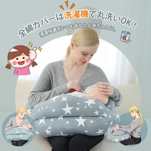 【カバー取り外し&洗濯OK】カバーは取り外し可能で、こまめに洗えて清潔をキープ。毎日使う授乳枕として衛生面にも配慮した仕様です(洗濯ネット使用推奨