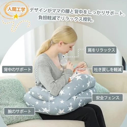 【母乳育児・ミルク兼用】新生児の授乳時に赤ちゃんを適切な位置へ引き上げ、ママと赤ちゃんの姿勢保持を助ける授乳クッション。母乳・ミルクのどちらにも使いやすい設計で、毎日の授乳時間を心地よくサポート