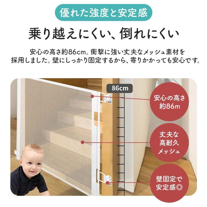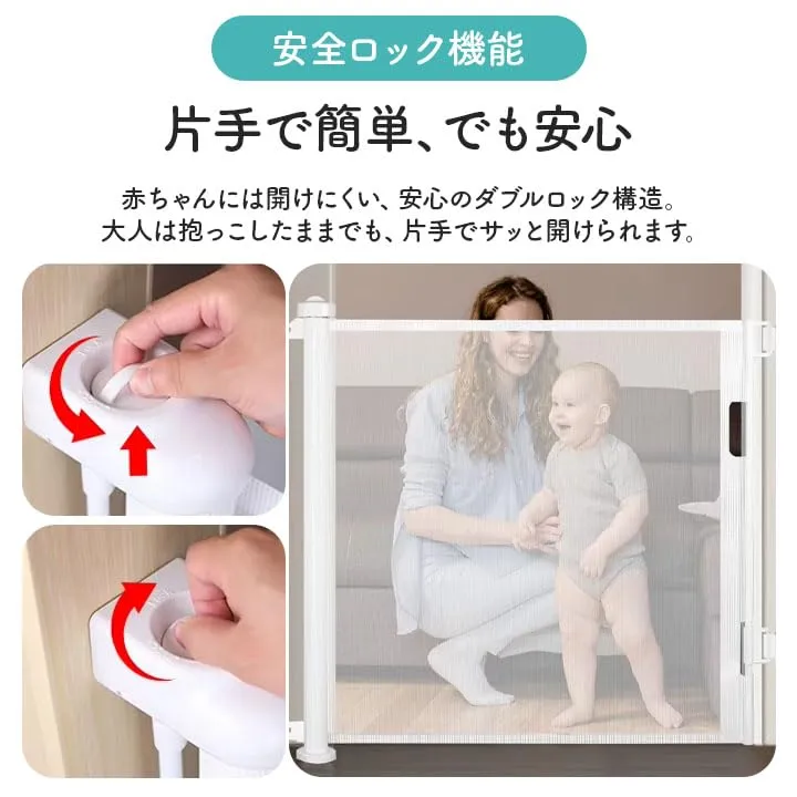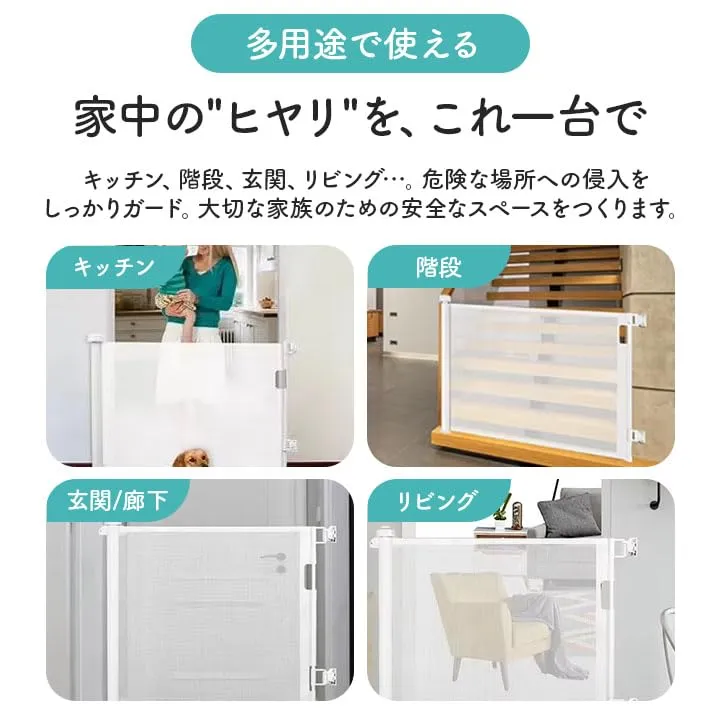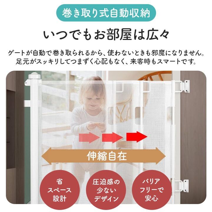 ロール式 ベビーゲート ペットゲート 150~300cm対応 巻き取り式 ドア柵 自動収納 安全ロック付き キッチン 階段 廊下 玄関 リビング 赤ちゃん 室内ゲート グレー ホワイト (ホワイト, 180?)☆彡